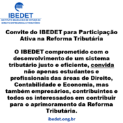 Contamos com a colaboração da comunidade acadêmica e profissional para que o IBEDET continue sendo uma voz técnica relevante nos grandes debates constitucionais do país.